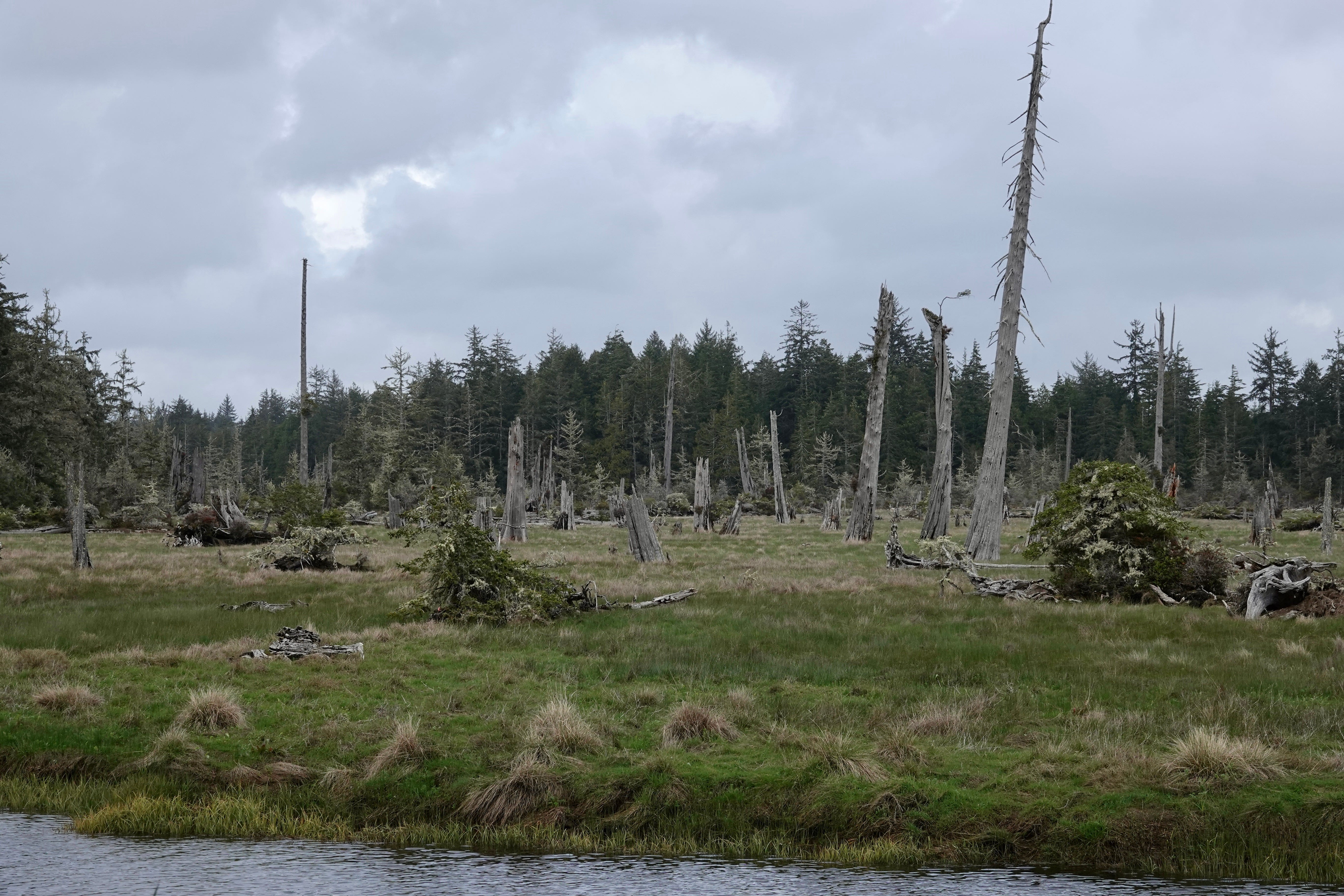 Brian Atwater and David Yamaguchi used soil cores and tree ring dating to show that the trees here died in the winter of 1700. They linked this date to a written record of an "orphan tsunami" recorded in Japan on January 26, 1700, suggesting that the land subsided in a great earthquake, drowning the grove in salt water, and sending a tsunami all the way to Japan. He and his colleagues published these findings in Science magazine in 1995.