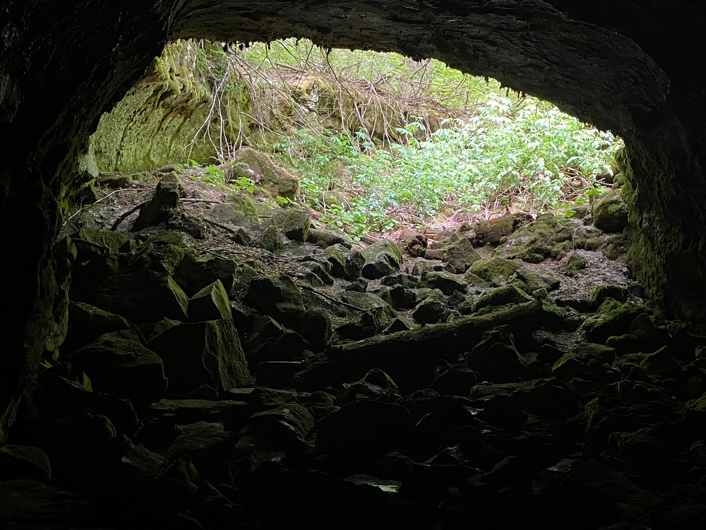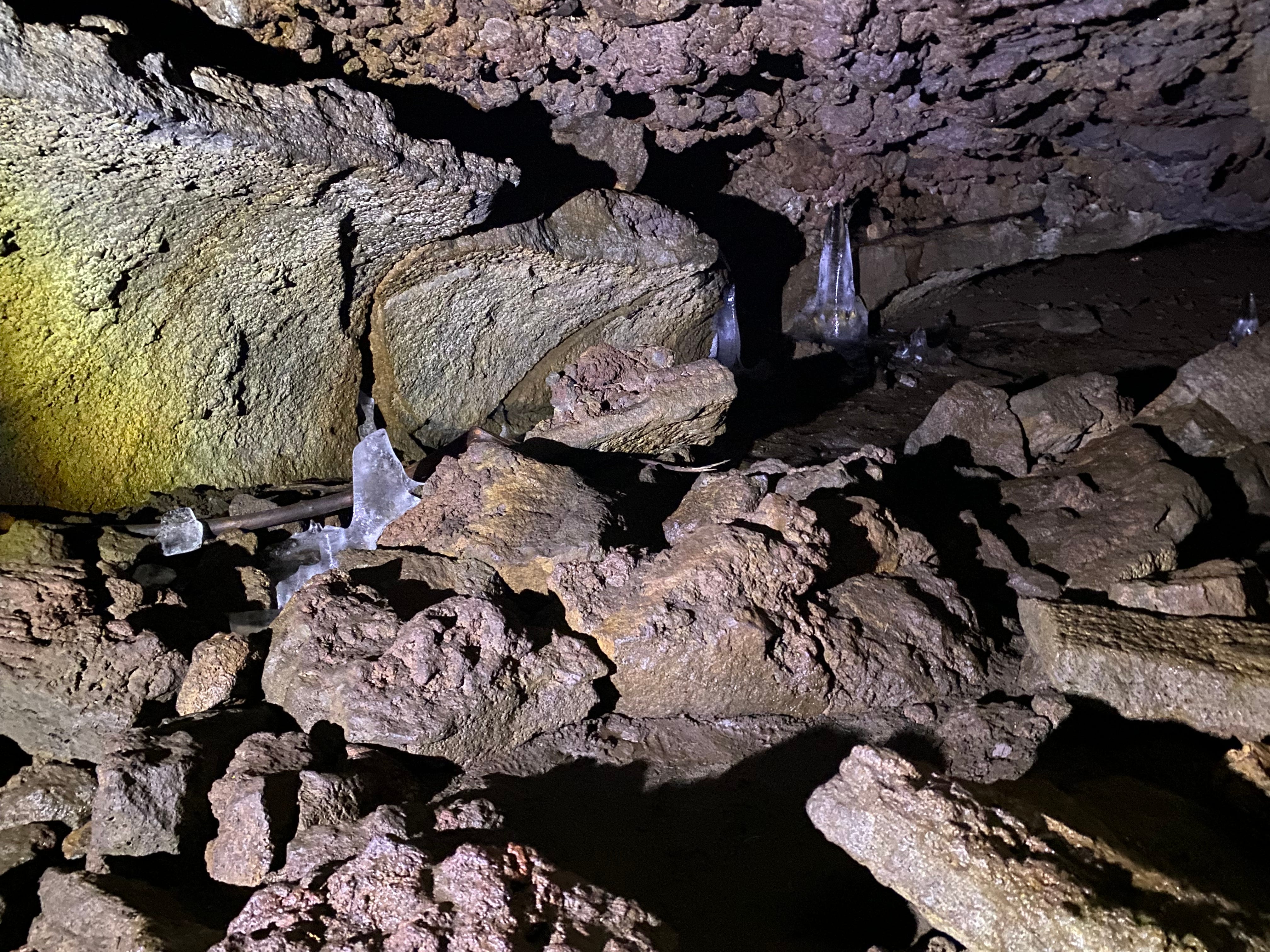 On to this week’s soundwalk. Last week I shared a recording made at Natural Bridges in Washington, a site with two rock bridges spanning a rock-jumbled ravine. The bridges were the remnants of a lava tube cave ceiling, created 12,000 to 18,000 years ago. A few miles away, another complex of lava tubes known as Guler Ice Cave(s) remain intact.